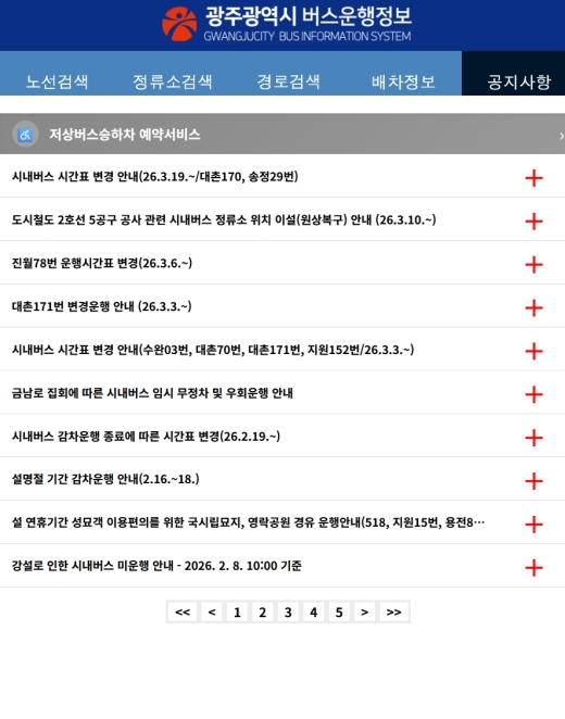 마지막으로, 갑작스러운 행사나 공사로 버스 노선이 바뀌는 경우가 종종 있어요. 이런 변경 사항을 놓치지 않으려면 상단 메뉴의 '공지사항'을 확인하는 습관을 들이는 게 좋아요. 여기에는 시내버스 시간표 변경이나 임시 우회 운행 같은 정보들이 올라오기 때문에, 출발 전에 한번 훑어보면 예상치 못한 상황에 당황하지 않고 대처할 수 있습니다.
