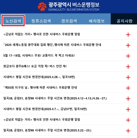 광주 시내버스 노선검색 요금 운행시간표